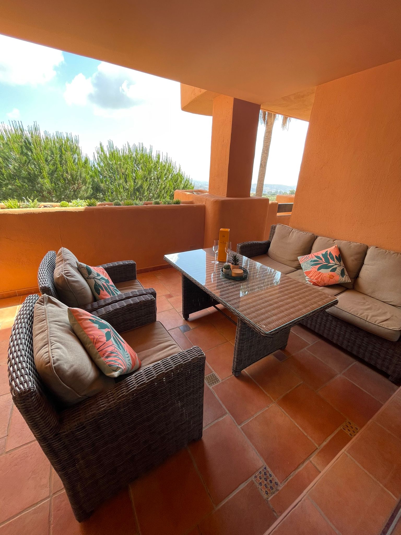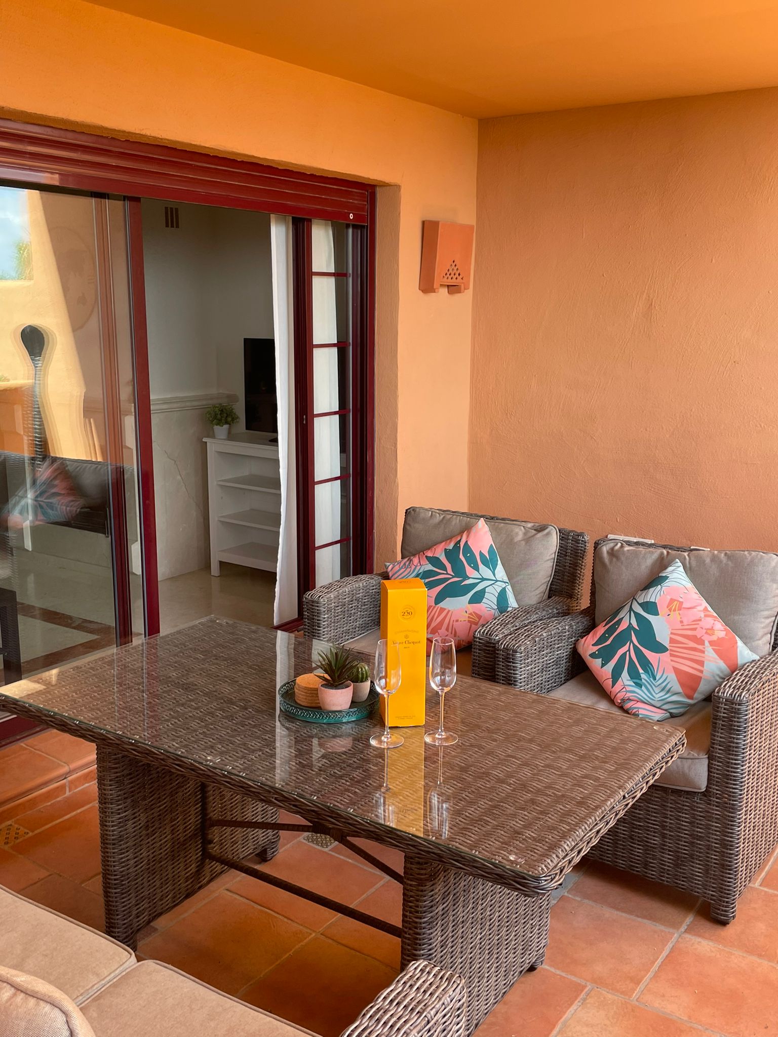 Beautiful first floor two bedroom apartment. It comes fully furnished to a high standard with a covered terrace featuring outstanding views over the gardens and mountains.